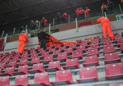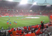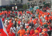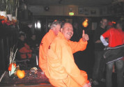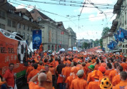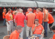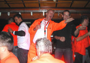 Het was een wedstrijd om gauw te vergeten, maar wat baarden we met onze Oranjerups, die wij met een paar mensen in elkaar hadden gezet, een opzien. Deze rups en het idee heeft toen model gestaan voor het genootschap DE HEEREN VAN ORANJE.